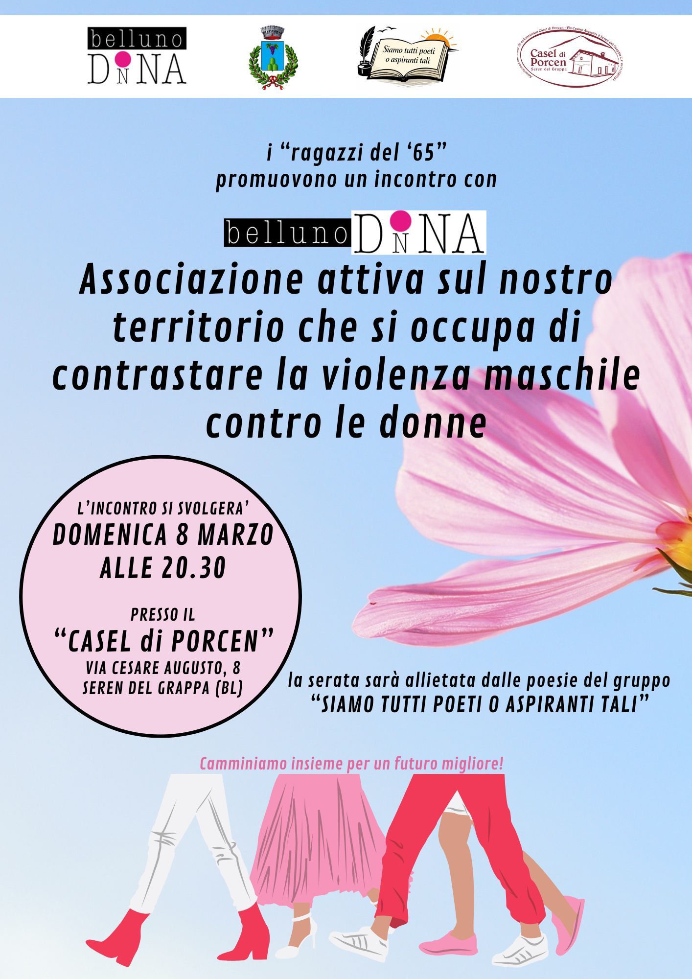 I Ragazzi del '65 promuovono un incontro con Belluno Donna, associazione che dal 2001 lavora con lo scopo di rendere visibile e dare una risposta concreta al fenomeno della violenza maschile contro le donne, creando consapevolezza e cambiando la cultura che discrimina il genere femminile.