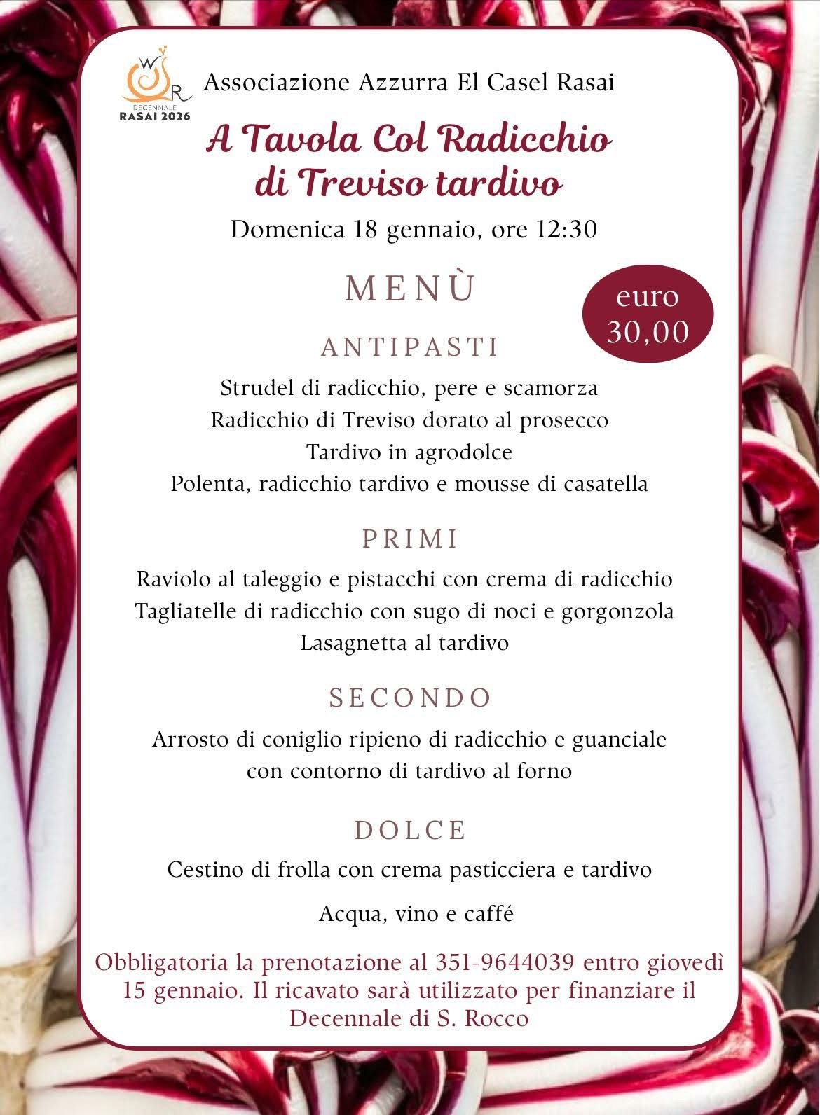 Pranzo gourmet a base di radicchio rosso tardivo di Treviso, dall'antipasto al dolce.